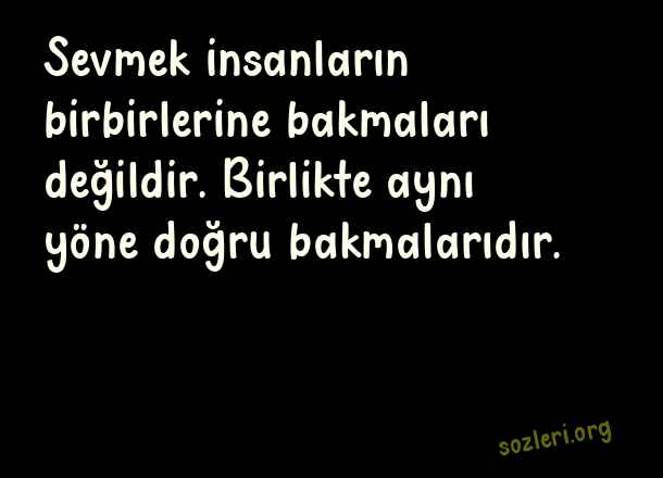 Sevmek insanların birbirlerine bakmaları değildir. Birlikte aynı yöne doğru bakmalarıdır. ( Andre Gide )