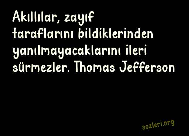 Akıllılar, zayıf taraflarını bildiklerinden yanılmayacaklarını ileri sürmezler. Thomas Jefferson ( Yanılmak )