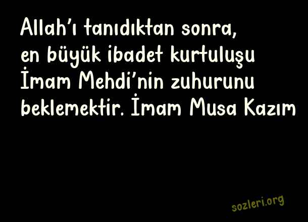 Allah’ı tanıdıktan sonra, en büyük ibadet kurtuluşu İmam Mehdi’nin zuhurunu beklemektir. İmam Musa Kazım ( Tanımak )