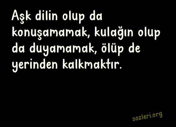 Aşk dilin olup da konuşamamak, kulağın olup da duyamamak, ölüp de yerinden kalkmaktır. ( Dayanılmaz Aşk )