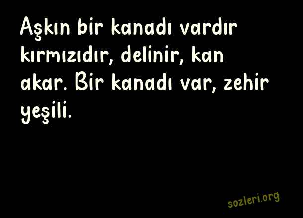 Aşkın bir kanadı vardır kırmızıdır, delinir, kan akar. Bir kanadı var, zehir yeşili. ( Sait Faik Abasıyanık )