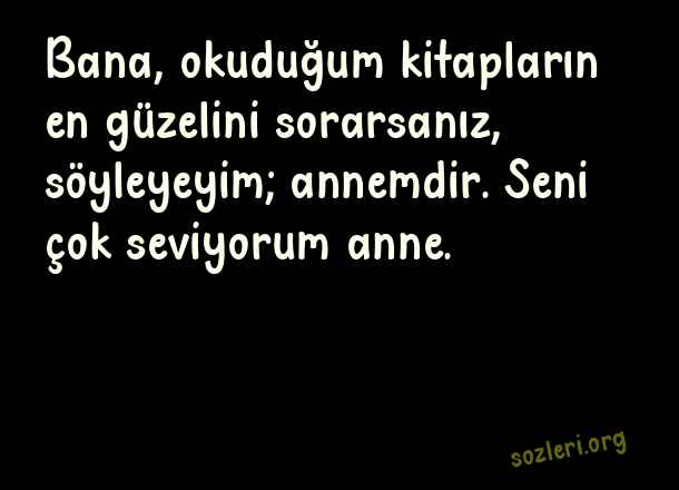 Bana, okuduğum kitapların en güzelini sorarsanız, söyleyeyim; annemdir. Seni çok seviyorum anne. ( Canım Annem )