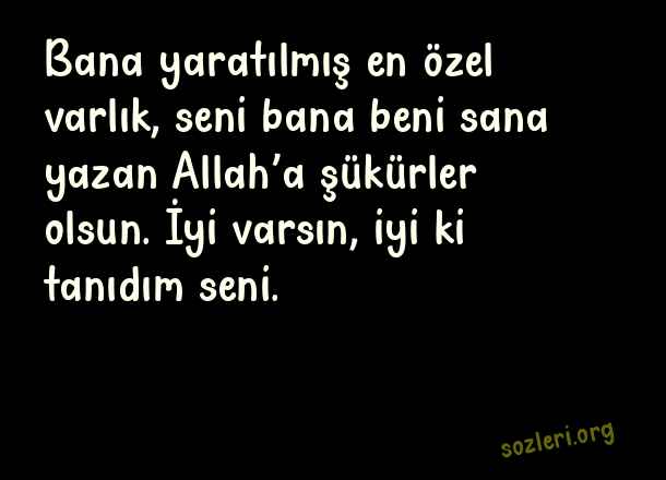 Bana yaratılmış en özel varlık, seni bana beni sana yazan Allah’a şükürler olsun. İyi varsın, iyi ki tanıdım seni. ( Tanışma Yıldönümü )