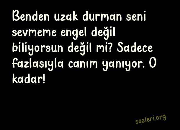 Benden uzak durman seni sevmeme engel değil biliyorsun değil mi? Sadece fazlasıyla canım yanıyor. O kadar! ( Canım Yanıyor )