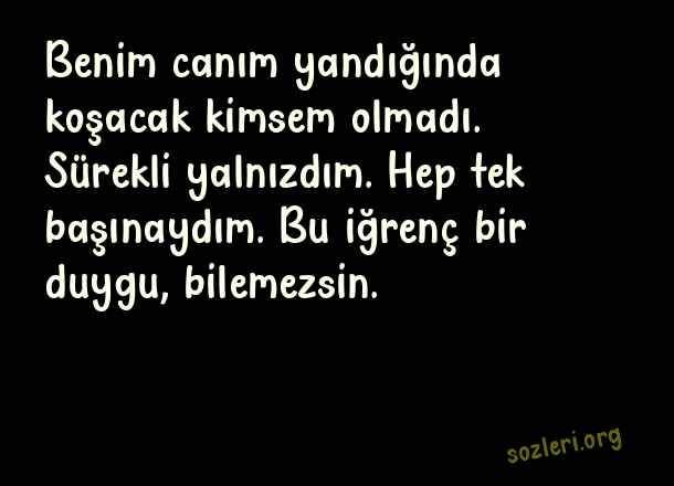 Benim canım yandığında koşacak kimsem olmadı. Sürekli yalnızdım. Hep tek başınaydım. Bu iğrenç bir duygu, bilemezsin. ( Canım )