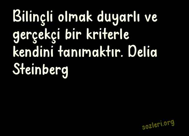 Bilinçli olmak duyarlı ve gerçekçi bir kriterle kendini tanımaktır. Delia Steinberg ( Tanımak )