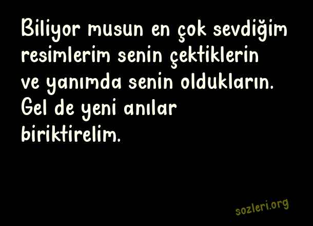 Biliyor musun en çok sevdiğim resimlerim senin çektiklerin ve yanımda senin oldukların. Gel de yeni anılar biriktirelim. ( Yanında Olmak )
