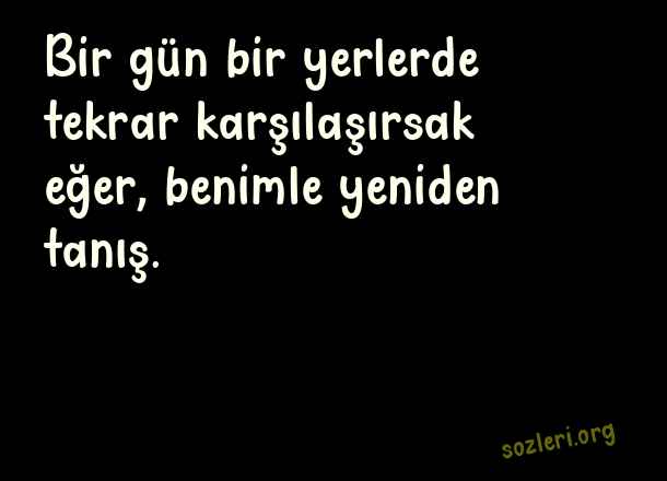 Bir gün bir - Tanışma Sözleri .. Bir gün bir yerlerde tekrar karşılaşırsak eğer, benimle yeniden tanış. ( Tanışma )