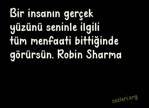 Bir insanın gerçek yüzünü seninle ilgili tüm menfaati bittiğinde görürsün. Robin Sharma ( Kullanılmak )