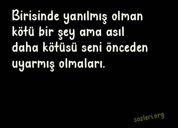 Birisinde yanılmış olman kötü bir şey ama asıl daha kötüsü seni önceden uyarmış olmaları. ( Yanılmak )