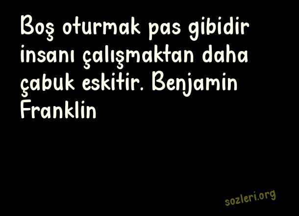 Boş oturmak pas gibidir insanı çalışmaktan daha çabuk eskitir. Benjamin Franklin ( Çalışmanın Önemi )