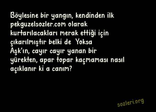 Böylesine bir yangın, kendinden ilk olarak kurtarılacakları merak ettiği için çıkarılmıştır belki de… Yoksa Aşk’ın, cayır cayır yanan bir yürekten, apar topar kaçmaması nasıl açıklanır ki a canım? ( Canım )