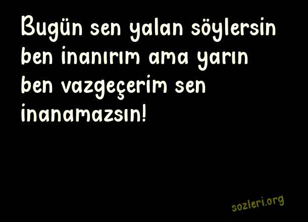 Bugün sen yalan söylersin ben inanırım ama yarın ben vazgeçerim sen inanamazsın! ( Uyanıklara Kapak Sözler )