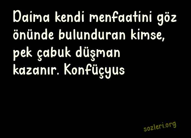 Daima kendi menfaatini göz önünde bulunduran kimse, pek çabuk düşman kazanır. Konfüçyus ( Kullanılmak )