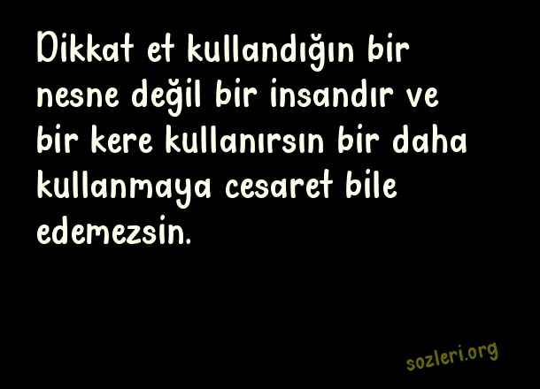 Dikkat et kullandığın bir nesne değil bir insandır ve bir kere kullanırsın bir daha kullanmaya cesaret bile edemezsin. ( Kullanılmak )
