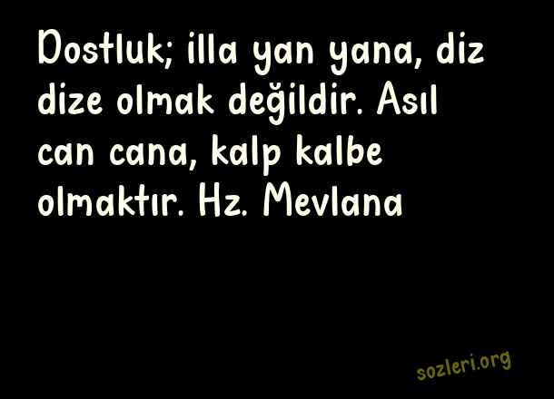 Dostluk; illa yan yana, diz dize olmak değildir. Asıl can cana, kalp kalbe olmaktır. Hz. Mevlana ( Yanında Olmak )