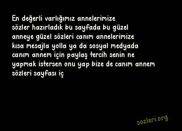 En değerli varlığımız annelerimize sözler hazırladık bu sayfada bu güzel anneye güzel sözleri canım annelerimize kısa mesajla yolla ya da sosyal medyada canım annem için paylaş tercih senin ne yapmak istersen onu yap bize de canım annem sözleri sayfası iç ( Canım Annem )