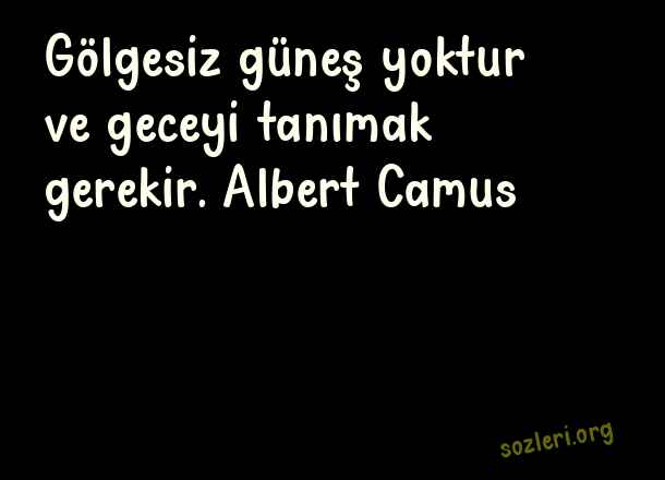 Gölgesiz güneş yoktur ve geceyi tanımak gerekir. Albert Camus ( Tanımak )