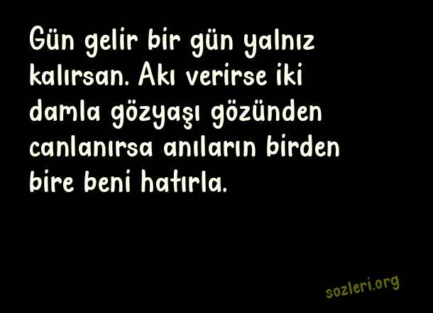 Gün gelir bir gün yalnız kalırsan. Akı verirse iki damla gözyaşı gözünden canlanırsa anıların birden bire beni hatırla. ( Anı )
