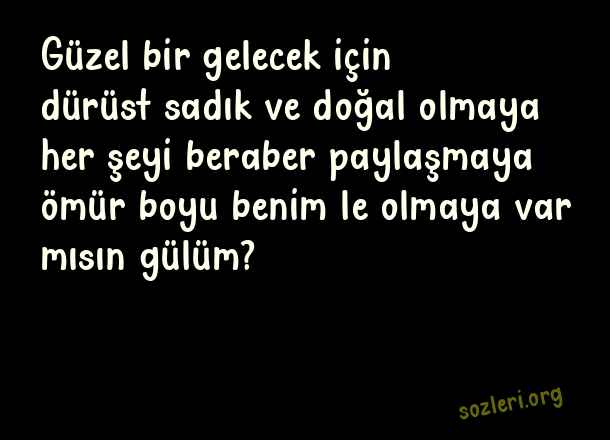 Güzel bir gelecek için dürüst sadık ve doğal olmaya her şeyi beraber paylaşmaya ömür boyu benim le olmaya var mısın gülüm? ( Tanışma )