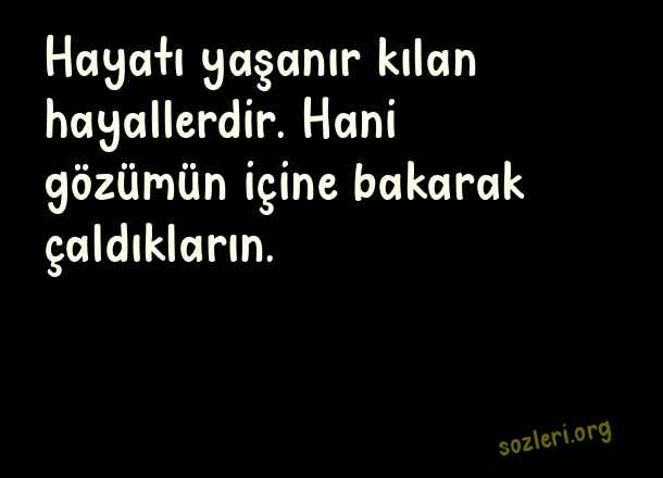Hayatı yaşanır kılan hayallerdir. Hani gözümün içine bakarak çaldıkların. ( Dünyanın En Güzel )