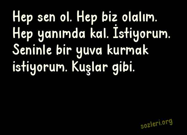 Hep sen ol. Hep biz olalım. Hep yanımda kal. İstiyorum. Seninle bir yuva kurmak istiyorum. Kuşlar gibi. ( Yanında Olmak )