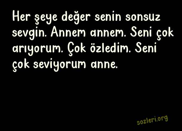 Her şeye değer senin sonsuz sevgin. Annem annem. Seni çok arıyorum. Çok özledim. Seni çok seviyorum anne. ( Canım Annem )