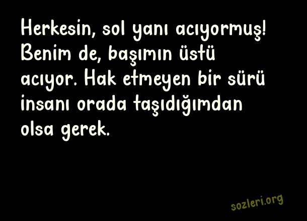 Herkesin, sol yanı acıyormuş! Benim de, başımın üstü acıyor. Hak etmeyen bir sürü insanı orada taşıdığımdan olsa gerek. ( Sol Yanım )