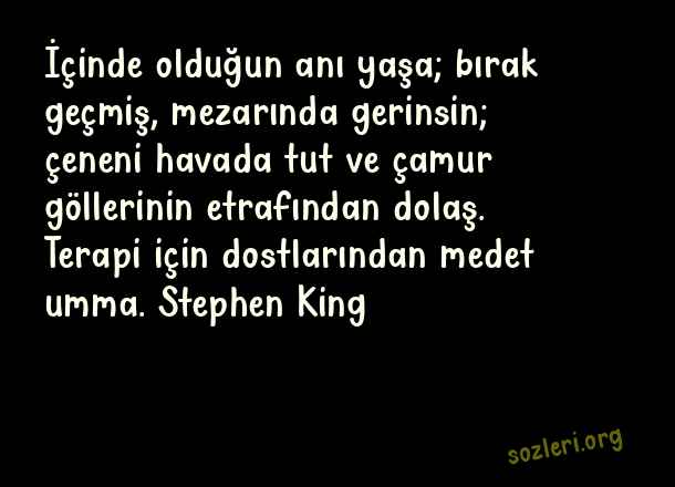 İçinde olduğun anı yaşa; bırak geçmiş, mezarında gerinsin; çeneni havada tut ve çamur göllerinin etrafından dolaş. Terapi için dostlarından medet umma. Stephen King ( Anı Yaşamak )