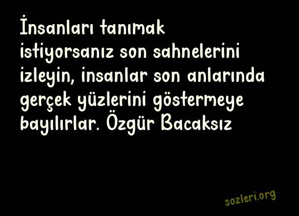 İnsanları tanımak istiyorsanız son sahnelerini izleyin, insanlar son anlarında gerçek yüzlerini göstermeye bayılırlar. Özgür Bacaksız ( Tanımak )