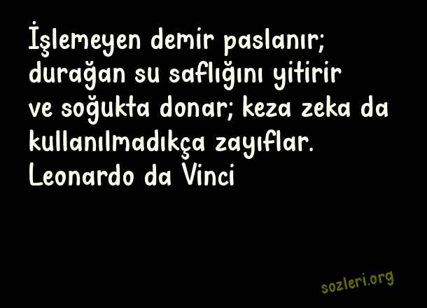 İşlemeyen demir paslanır; durağan su saflığını yitirir ve soğukta donar; keza zeka da kullanılmadıkça zayıflar. Leonardo da Vinci ( Çalışmanın Önemi )
