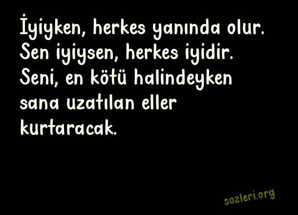 İyiyken, herkes yanında olur. Sen iyiysen, herkes iyidir. Seni, en kötü halindeyken sana uzatılan eller kurtaracak. ( Yanında Olmak )