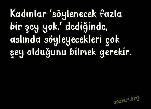 Kadınlar ‘söylenecek fazla bir şey yok.’ dediğinde, aslında söyleyecekleri çok şey olduğunu bilmek gerekir. ( İnanılmaz Sözler )