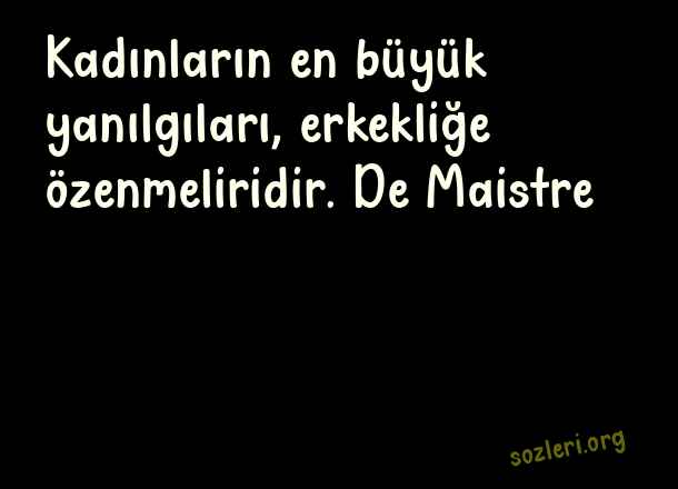 Kadınların en büyük yanılgıları, erkekliğe özenmeliridir. De Maistre ( Yanılmak )