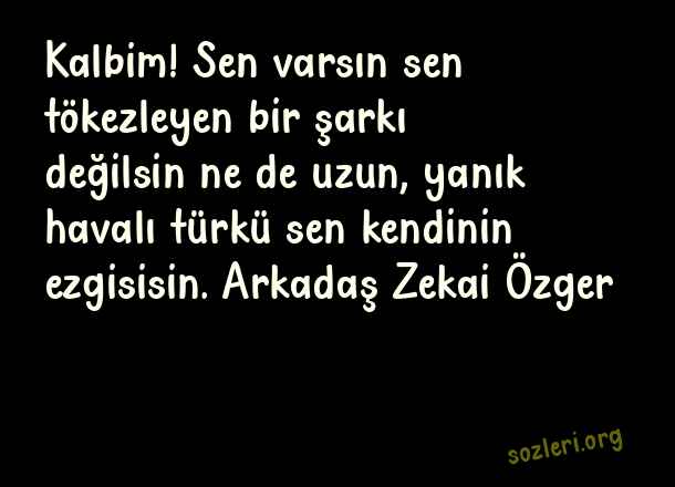 Kalbim! Sen varsın sen tökezleyen bir şarkı değilsin ne de uzun, yanık havalı türkü sen kendinin ezgisisin. Arkadaş Zekai Özger ( Sol Yanım )