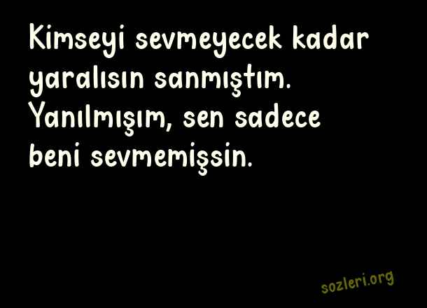 Kimseyi sevmeyecek kadar yaralısın sanmıştım. Yanılmışım, sen sadece beni sevmemişsin. ( Yanılmak )