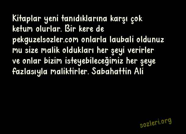 Kitaplar yeni tanıdıklarına karşı çok ketum olurlar. Bir kere de onlarla laubali oldunuz mu size malik oldukları her şeyi verirler ve onlar bizim isteyebileceğimiz her şeye fazlasıyla maliktirler. Sabahattin Ali ( Tanımak )