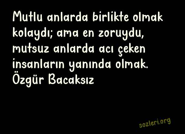 Mutlu anlarda birlikte olmak kolaydı; ama en zoruydu, mutsuz anlarda acı çeken insanların yanında olmak. Özgür Bacaksız ( Yanında Olmak )