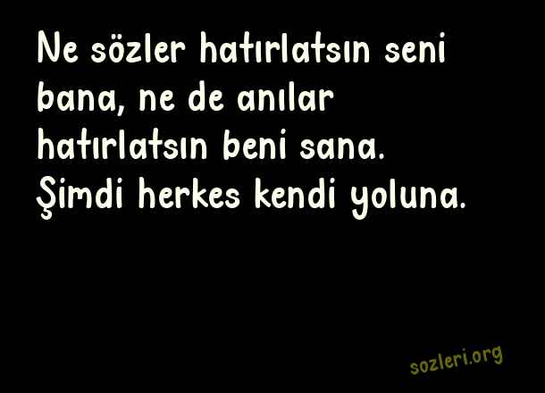 Ne sözler hatırlatsın - Anı Sözleri .. Ne sözler hatırlatsın seni bana, ne de anılar hatırlatsın beni sana. Şimdi herkes kendi yoluna. ( Anı )