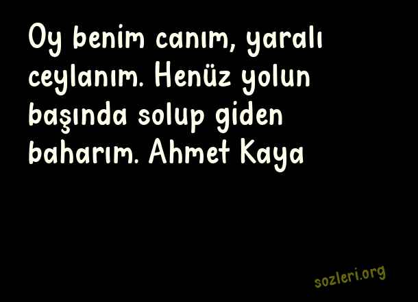 Oy benim canım, yaralı ceylanım. Henüz yolun başında solup giden baharım. Ahmet Kaya ( Canım )