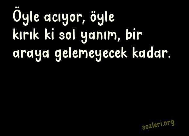 Öyle acıyor, öyle kırık ki sol yanım, bir araya gelemeyecek kadar. ( Sol Yanım )