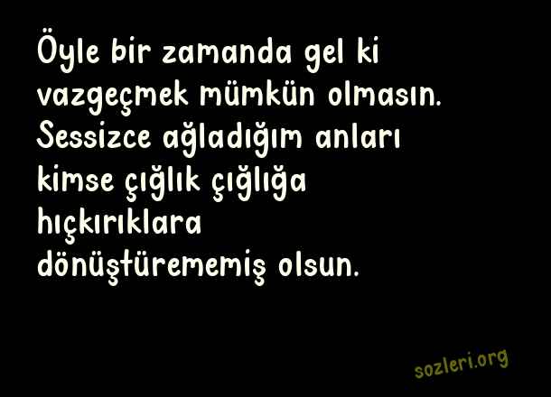 Öyle bir zamanda gel ki vazgeçmek mümkün olmasın. Sessizce ağladığım anları kimse çığlık çığlığa hıçkırıklara dönüştürememiş olsun. ( Orhan Veli Kanık )