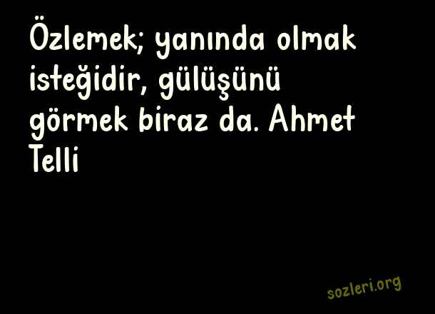 Özlemek; yanında olmak isteğidir, gülüşünü görmek biraz da. Ahmet Telli ( Yanında Olmak )