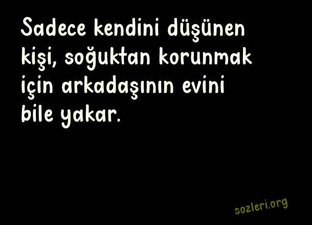 Sadece kendini düşünen kişi, soğuktan korunmak için arkadaşının evini bile yakar. ( Kullanılmak )