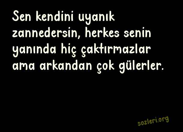 Sen kendini uyanık zannedersin, herkes senin yanında hiç çaktırmazlar ama arkandan çok gülerler. ( Kendini Uyanık Zannedenlere Sözler )