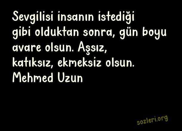 Sevgilisi insanın istediği gibi olduktan sonra, gün boyu avare olsun. Aşsız, katıksız, ekmeksiz olsun. Mehmed Uzun ( Yanında Olmak )