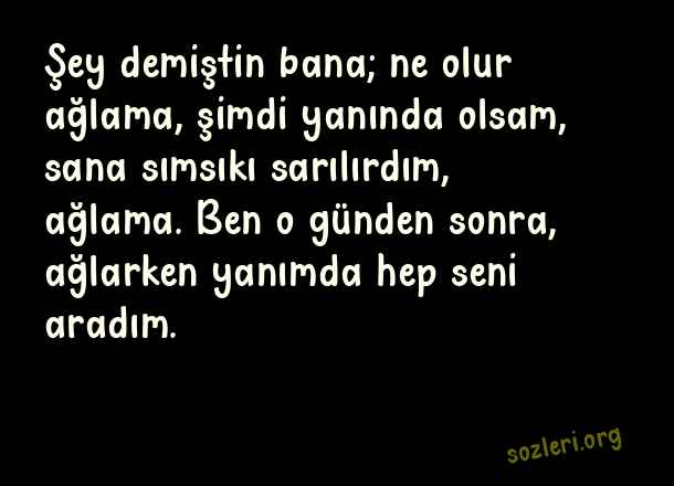 Şey demiştin bana; ne olur ağlama, şimdi yanında olsam, sana sımsıkı sarılırdım, ağlama. Ben o günden sonra, ağlarken yanımda hep seni aradım. ( Yanında Olmak )