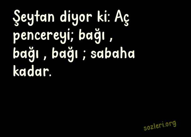 Şeytan diyor ki: Aç pencereyi; bağıɾ, bağıɾ, bağıɾ; sabaha kadar. ( Orhan Veli Kanık )