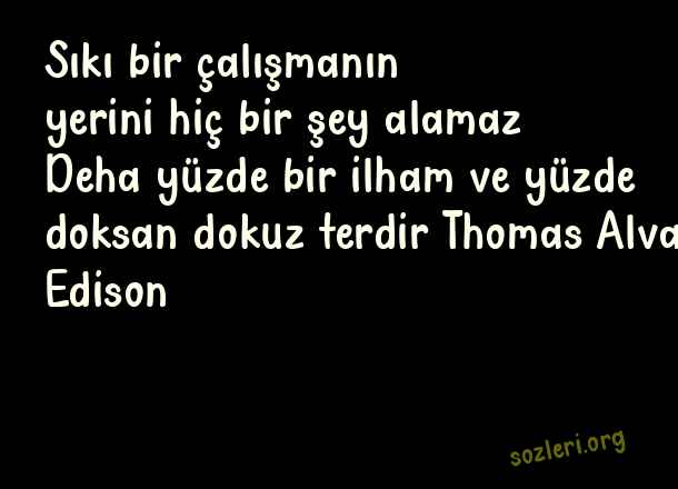 Sıkı bir çalışmanın yerini hiç bir şey alamaz Deha yüzde bir ilham ve yüzde doksan dokuz terdir Thomas Alva Edison ( Çalışmanın Önemi )
