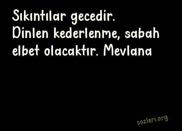 Sıkıntılar gecedir. Dinlen kederlenme, sabah elbet olacaktır. Mevlana ( Canı Sıkkın Olanlara Sözler )